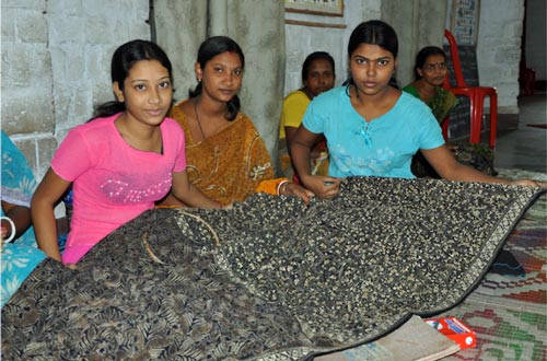 Rajarhat is 29 kilometers from Kolkata in a beautiful leafy rural village surrounded by rice swamps. Mosquitos thrive in their multitudes! Karam Bhoomi means joyful land. The centre was built as a holistic development and holiday camp for the sponsored children from the Divya Chaya Trust homes. The centre also serves as a skills development centre for teenagers, The Teen Outreach Group & Vocational Training for rural women: The Pallivan group. The Pallivan women come from the poverty stricken outlying villages and are taught the specialist skill of Kantha embroidery, thus are able to make a real living and develop a feeling of empowerment and self worth. Pallivan means “to bloom”, and thanks to the support of the two charities, the women are certainly blooming, their needlework is exquisite and is now selling at real and deserved prices in the West.