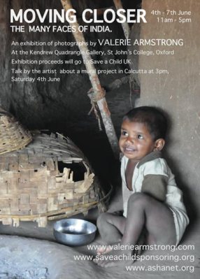 The exhibition will be formally opened at 7pm Friday 3rd June 2011, by guest of honour Rekha Mody, Founder Trustee of the Divya Chaya Trust in India. Proceeds from the exhibition will go to: Save a Child UK.