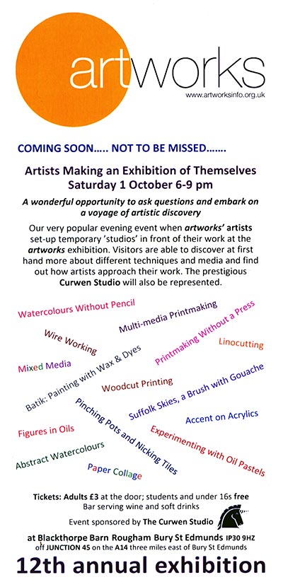 from 6pm to 9pm, at Blackthorpe Barn, Rougham, Suffolk – a special date in the Artworks diary!