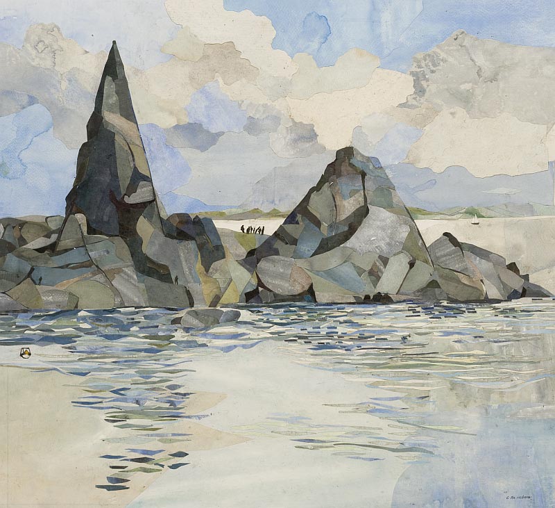 Christine McKechnie, Devon rock, watercolour collage, 83x79cm