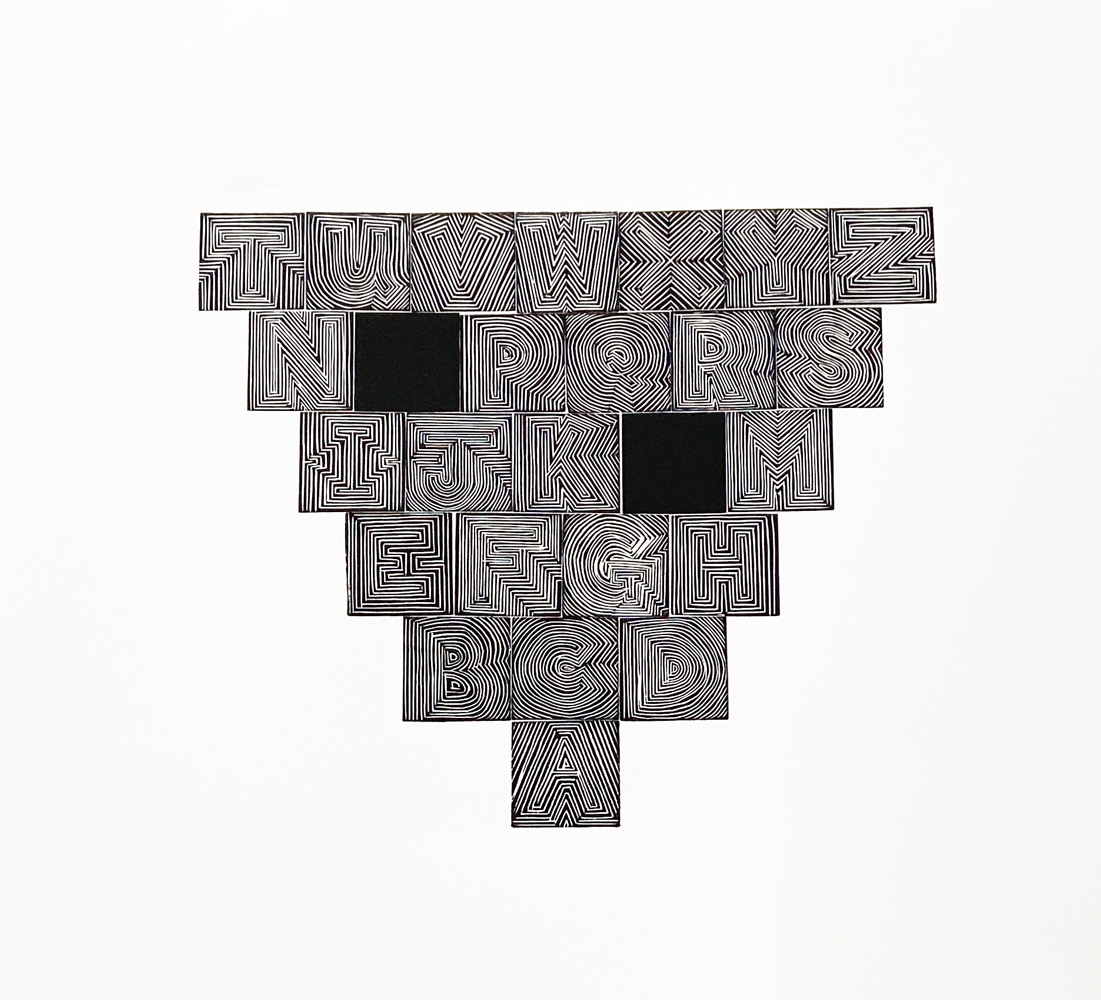 I am inspired by the rhythm of repetition and how the physical act of creating geometric patterns using hand cut straight lines on a variety of planes can be both meditative and calming.