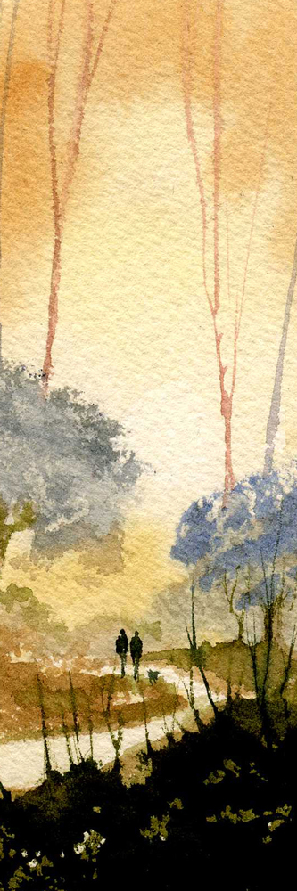 Living in the Suffolk countryside I often see and pause to look at who may be coming along the pathway I have stopped to view. When walking down one I not only look ahead, but pause to look behind too to see what I did see ahead, and how it looks once passed. I didn’t realise how often this happens until last year when I started sketching, painting and photographing and looked back at the amount of pathways I have actually walked down – not only to see if it is clear and free to walk down, but on my meanderings, observing the tunnels of light, the deep shadows, the contrast of sunlight on trees and hidden gems of mystery and fascination, studying and listening to nature at work often covering or destroying what man has made, taking back what is rightfully hers.