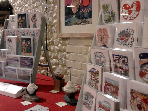 The Artworks shop stocks small paintings, unframed prints and drawings, collage, sculptural artworks including ceramics, metalwork, glass and papier maché, together with a wonderful variety of handmade artist cards, greetings cards and artist postcards.
