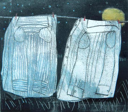 I live in a typical pink, painted, timber framed, thatched Suffolk cottage set in a garden, with humpy clipped hedges like sculptures, veg. plots surrounded in rabbit netting, outdoor rooms with sitting places. In spring there are the aconites then snow drops in drifts, blue anemones, blue bells, primroses, and cowslips, roses in Summer covering my studio, hollyhocks, fox gloves, poppies, daisies, lillies ferns, and hostas to name a few. Then in autumn the trees are laden with fruit, apples, pears, plums, and quinces, some of those I give to my local favorite restaurant.