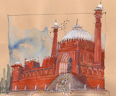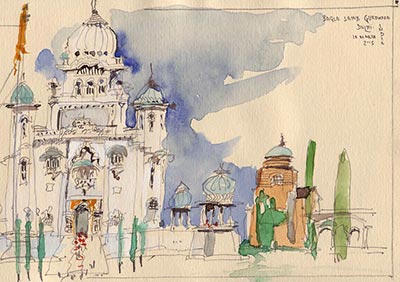 However, he is also an artist very much with his feet on the ground – as his recent watercolour sketches demonstrate, revealing a unique insight into the locations, religious communities & styles of architecture that he has encountered on his extensive travels around the world.