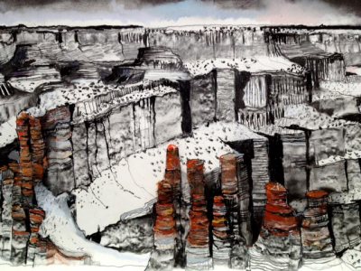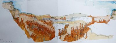 The Sacred Places project involves visiting twenty selected locations around the world, each location involves a journey of discovery, and it will be illustrated in drawings and paintings created in situ. In tandem with this, Doug is also making sound recordings of people and their spiritual experiences en route.