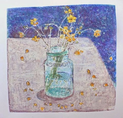 Also on show will be some of Gillian’s recent still life drawings of spring flowers; pots of primroses, jugs of wallflowers and vases of tulips all worked swiftly in bright colours and vivid marks. These drawings provide a strong visual contrast to her landscapes and seascapes, but the subject matter still explores her fascination with the fragility of permanence.