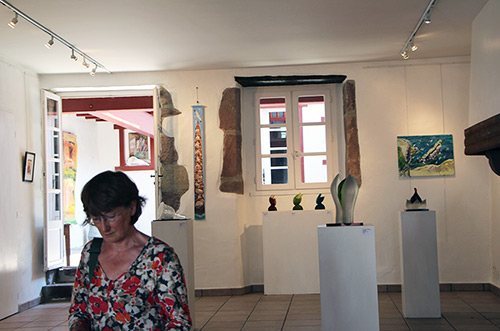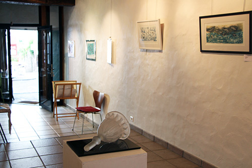 To the left of the picture you can see a large painting on canvas by the painter Eleonora Knowland, inspired by her recent travels across Australia, bringing an international dimension to the show. Another artist, Doug Patterson, has also travelled extensively, this year showing drawings and watercolours developed from his Sacred Places of the World project.