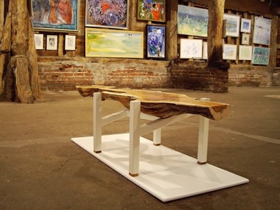 Mac McCaughan is a designer-craftsman working in wood and steel. His one-off bespoke contemporary designs often have a strong sculptural aesthetic, as seen in this impressive oak bench.