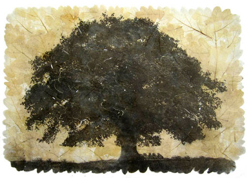 | Quercus, Fordham, etching on oak leaf handmade paper |